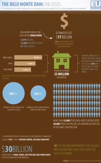 - ^ Phillips, Tom (10 March 2011). "Belo Monte hydroelectric dam construction work begins". London: Guardian UK. Archived from the original on 21 September 2013. Retrieved 2 April 2011.