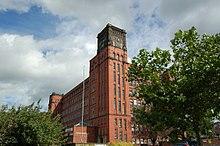 The industrialist Jedediah Strutt, a partner of Richard Arkwright, built a water-powered cotton mill in Belper in the late 18th century: the second in the world at the time. With the expansion of the textile industry Belper became one of the first mill towns. In 1784 Strutt built the North Mill and, across the road, the West Mill. In 1803 the North Mill was burnt down and replaced by a new structure designed to be fireproof. Further extensions followed, culminating in the East Mill in 1913 – a present-day Belper landmark. Although no longer used to manufacture textiles the mill still derives electricity from the river, using turbine-driven generators.