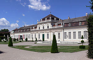 The Belvedere is a historic building complex in Vienna, Austria, consisting of two Baroque palaces (the Upper and Lower Belvedere), the Orangery, and the Palace Stables. The buildings are set in a Baroque park landscape in the third district of the city, on the south-eastern edge of its centre. It houses the Belvedere museum. The grounds are set on a gentle gradient and include decorative tiered fountains and cascades, Baroque sculptures, and majestic wrought iron gates. The Baroque palace complex was built as a summer residence for Prince Eugene of Savoy.
