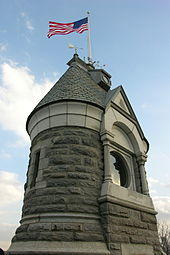 After the New York Meteorological Observatory automated its equipment and moved its offices to Rockefeller Center in the 1960s, Belvedere Castle was closed to the public and became an object of much vandalism, neglect and deterioration.[15][16] The Central Park Conservancy launched a restoration effort and reopened the structure on May 1, 1983. The original turret was replaced, the pavilions were rebuilt, and the castle was converted into a visitor center.[4] In 1995, the Conservancy's Historic Preservation Crew replaced the painted wooden loggia of the castle, working from Vaux's designs, on the granite piers and walls that had survived. The same year, a $340,000 grant was distributed toward restoring the castle as the Henry Luce Nature Center. That restoration was completed in 1996.[17]