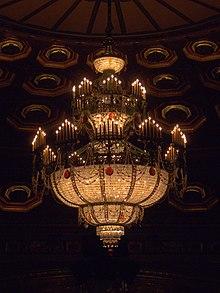 The centerpiece of the auditorium is the large chandelier in the dome above the balcony. It weighs 4,700 lb (2,100 kg), is 20 feet (6.1 m) high by 12 feet (3.7 m) wide. Its restoration was dedicated to the late H.J. Heinz II.