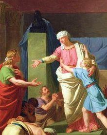 Some classical rabbinical sources argue that Joseph identified himself for other reasons.[6] In these sources, Benjamin swore an oath, on the memory of Joseph, that he was innocent of theft, and, when challenged about how believable the oath would be, explained that remembering Joseph was so important to him that he had named his sons in Joseph's honour.[6] These sources go on to state that Benjamin's oath touched Joseph so deeply that Joseph was no longer able to pretend to be a stranger.[6]