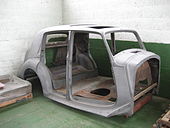 To meet post-war demand, particularly UK Government pressure to export and earn overseas currency, Rolls-Royce developed an all steel body using pressings made by Pressed Steel to create a "standard" ready-to-drive complete saloon car. The first steel-bodied model produced was the Bentley Mark VI: these started to emerge from the newly reconfigured Crewe factory early in 1946.[31][34] Some years later, initially only for export, the Rolls-Royce Silver Dawn was introduced, a standard steel Bentley but with a Rolls-Royce radiator grille for a small extra charge, and this convention continued.