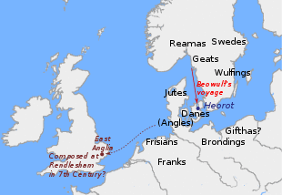 - ^ Shippey, Tom A. Beowulf: The Critical Heritage pp. 387–88. ISBN 0-415-02970-8