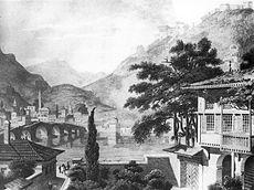 In the 18th century, Berat was one of the most important Albanian cities during the Ottoman period.[36] In the early modern era the city was the capital of the Pashalik of Berat founded by Ahmet Kurt Pasha. Berat was incorporated in the Pashalik of Yanina after Ibrahim Pasha of Berat was defeated by Ali Pasha in 1809. In 1867, Berat became a sanjak in Yannina (Yanya) vilayet. Berat had replaced a declining Vlorë as centre of the sanjak (province) in the nineteenth century.[37] The sanjak of Berat and the city itself were under the dominance of the Albanian Vrioni family.[37] The Jewish community of Yanina renewed the Jewish community of Berat in the nineteenth century.[31]