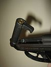 One defining feature of this pistol is the 'tip-up' barrel. The barrel pivots on a pin under the muzzle so that the chamber may be loaded with the slide in the closed position. It is released by a lever on the left side of the frame, above the trigger. This simplifies loading, unloading, and checking load status, as the slide can be difficult for some people to retract by hand.[6]