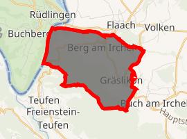 The municipality is located on a terrace on the northern slope of the Irchel elevation. It includes the village of Berg Gräslikon (which left Buch am Irchel in 1855 to join Berg). In 1619 Oberdorf left the municipality, in 1775 Schloss Schollenberg left and in 1788 Ziegelhütte left as well, all three joining Flaach.