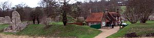 A large deer park, owned by the Crown, was established around the castle to provide hunting grounds.[9] The castle was carefully positioned next to the park, which was overlooked by the motte.[10] A vineyard was also maintained alongside the castle.[11] The old Anglo-Saxon manorial centre was moved to the site, and as a result the Anglo-Saxon settlement of Berkhamsted may have shifted from the area now called Northchurch along Akeman Street to be closer to the castle; several mills, essential for grinding flour, were present there in 1086.[12]