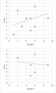 The most common example of Berkson's paradox is a false observation of a negative correlation between two positive traits, i.e., that members of a population which have some positive trait tend to lack a second. Berkson's paradox occurs when this observation appears true when in reality the two properties are unrelated—or even positively correlated—because members of the population where both are absent are not equally observed. For example, a person may observe from their experience that fast food restaurants in their area which serve good hamburgers tend to serve bad fries and vice versa; but because they would likely not eat anywhere where both were bad, they fail to allow for the large number of restaurants in this category which would weaken or even flip the correlation.