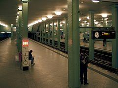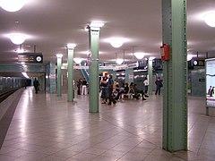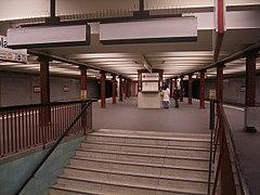 The U8 station was also a ghost station during the division of Berlin from 13 August 1961 to 1 July 1990. The station master offices were also built; these were shifted and walls were removed. The access at Dirksenstraße had to be made accessible again, just like the connecting stairs to the mall and to the platforms of Line E. Other than that, the intercommunication staircase was also built towards Line E so that it goes through the dimly lit platforms. Stainallee was renamed a few months after the closure of the stairs. In all cases, the metro stations had to be recognizable as such on the surface . The U-Bahn logo has been removed in recent years. This station also had to undergo renovation works from 17 May to 30 June 1990 before the full reopening on 1 July 1990.