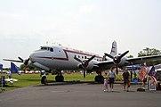 With this fleet, the British contribution was expected to rise to 750 tons a day in the short term, albeit at the cost of suspending all air traffic except for the airlift to Berlin and Warsaw.[56] For a longer-term operation, the US would have to add additional aircraft as soon as possible, and those would have to be as large as possible while still able to fly into the Berlin airports. Only one aircraft type was suitable, the four-engined C-54 Skymaster and its US Navy equivalent, the R5D, of which the US military had approximately 565, with 268 Air Force and Navy Skymasters in MATS, 168 in the troop carrier groups, and 80 Navy R5Ds in miscellaneous commands. Planners calculated that including C-54s already ordered to Germany and drawing on those flying with civilian carriers, 447 Skymasters could be available for an "extreme emergency".[57]