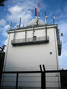 The Berlin-Müggelberge TV tower is the 31 metre tall base of a tower, never completed, in the Müggel hills of southeast Berlin, Germany. The tower base is currently used as radio relay link station.