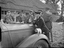 Many American officers had found Montgomery a difficult man to work with, and after Goodwood, pressured Eisenhower to fire Montgomery.[126] Although the Eisenhower–Montgomery dispute is sometimes depicted in nationalist terms as being an Anglo-American struggle, it was the British Air Marshal Arthur Tedder who was pressing Eisenhower most strongly after Goodwood to fire Montgomery.[139] An American officer wrote in his diary that Tedder had come to see Eisenhower to "pursue his current favourite subject, the sacking of Monty".[140] With Tedder leading the "sack Monty" campaign, it encouraged Montgomery's American enemies to press Eisenhower to fire Montgomery.[140] Brooke was sufficiently worried about the "sack Monty" campaign to visit Montgomery at his Tactical Headquarters (TAC) in France and as he wrote in his diary; "warned [Montgomery] of a tendency in the PM [Churchill] to listen to suggestions that Monty played for safety and was not prepared to take risks".[126] Brooke advised Montgomery to invite Churchill to Normandy, arguing that if the "sack Monty" campaign had won the Prime Minister over, then his career would be over as having Churchill's backing would give Eisenhower the political "cover" to fire Montgomery.[140] On 20 July, Montgomery met Eisenhower and on 21 July Churchill at the TAC in France.[140] One of Montgomery's staff officers wrote afterwards that it was "common knowledge at Tac that Churchill had come to sack Monty".[140] No notes were taken at the Eisenhower–Montgomery and Churchill–Montgomery meetings, but Montgomery was able to persuade both men not to fire him.[135]