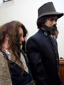 The first quarter-sessions were held at the court house in 1841, and the first trial by jury in the colony of New South Wales was held here.[25] The assize courts were continued for only seven years. In 1850 the district court moved to Goulburn, south of Berrima. Minor courts continued at Berrima until 1873. Notable trials were of John Lynch, who was hanged for the murder of at least nine people, and of Lucretia Dunkley and her lover Martin Beech who were both hanged in 1843 for the murder of Dunkley's husband. Their trial is simulated in the present-day museum courtroom with realistic manikins and an audio commentary.[5] Dunkley was the only woman to be hanged at Berrima gaol.
