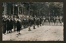 In 1934, Poland was home to 40,000 of Betar's 70,000 members.[9] Routine Betar activities in Warsaw included military drilling, instruction in Hebrew, and encouragement to learn English. Militia groups organized by Betar Poland helped to defend against attacks by the anti-Semitic ONR.[10] The interwar Polish government helped Betar with military training.[11] Some members admired the Polish nationalist camp and imitated some of its aspects.[12]
