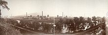 On May 1, 1861, the company's title was changed again, this time to the Bethlehem Iron Company.[1] Construction of the first blast furnace began on July 1, 1861, and it went into operation on January 4, 1863. The first rolling mill was built between the spring of 1861 and the summer of 1863, with the first railroad rails being rolled on September 26. A machine shop, in 1865, and another blast furnace, in 1867, were completed. During its early years, the company produced rails for the rapidly expanding railroads and armor plating for the US Navy.