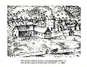 From the fourteenth century, Bethlem had been referred to colloquially as "Bedleheem", "Bedleem" or "Bedlam".[39] Initially Bedlam functioned merely as an informal, alternative moniker for the institution but, from approximately the Jacobean era, it emerged as Bethlem's doppelgänger, detaching itself increasingly from the hospital, and entering everyday speech to signify a state of madness, chaos, and the irrational nature of the world.[40] This development was partly due to Bedlam's staging in several plays of the Jacobean and Caroline periods, including: The Honest Whore, Part I (1604); Northward Ho (1607); The Duchess of Malfi (1612); The Pilgrim (c. 1621); and The Changeling (1622).[41] This dramatic interest in Bedlam is also evident in references to Bedlam in early seventeenth-century plays such as Epicœne, or The Silent Woman (1609), Bartholomew Fair (1614), and A New Way to Pay Old Debts (c. 1625).[42] The appropriation of Bedlam as a theatrical locale for the depiction of madness probably owes no little debt to the establishment in 1576 in nearby Moorfields of The Curtain and The Theatre, two of the main London playhouses;[43] it may also have been coincident with that other theatricalisation of madness as charitable object – the commencement of public visiting at Bethlem.[44]