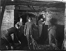 An appeals process was set up, to allow conscripts the opportunity to challenge the decision to send them to the pits, although decisions were rarely overturned.[23] Those who refused to serve in the mines were imprisoned.[24][25][26] By 31 May 1944, 285 conscripts had refused to serve as miners, of whom 135 had been prosecuted and 32 had been given a prison sentence.[27] By the end of November 1944, out of a total of 16,000 conscripts, 143 had refused to serve in the mines and had been sent to prison, some with the imposition of hard labour.[28]