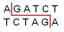 Like most type II restriction enzymes, BglII consists of two identical subunits that form a homodimer around the DNA double helix. Each monomer is 223 amino acids and symmetrically bind both sides of the unique palindromic nucleotide sequence AGATCT, cleaving the scissile phosphodiester bond between the first Adenine and Guanine nucleotides on both strands of the DNA molecule, creating sticky ends with 5' end overhangs.