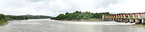 Bhoothathankettu is a dam and tourist spot in Ernakulam district in Kerala, India. It is situated outside the village of Pindimana, about 10 km away from the town of Kothamangalam and 50 km away from the main city of Kochi. The original natural dam has been supplemented by a modern dam impounding the Bhoothathankettu Reservoir (Thattekad Reservoir).