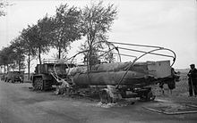In December 1944 it was decided to deploy Bibers against traffic to Antwerp in the Scheldt Estuary.[9] The force was based at Rotterdam with forward bases at Poortershaven and Hellevoetsluis.[9] The first attack took place on the night of the 22/23 of December.[9] Eighteen Biber were involved of which only one returned. The only allied loss caused by the operation was Alan A. Dale.[9] Further operations between the 23rd and the 25th achieved no success and none of the 14 submarines deployed survived.[9] On the 27th the accidental release of a torpedo in the Voorneschen resulted in the sinking of 11 Bibers (although they were later recovered).[10] The three undamaged Bibers later sailed again; none returned.[10] An operation on the night 29/30 January resulted in damage to (much of it due to ice) or loss of most of the remaining Bibers.[9] Losses combined with RAF bombing prevented attacks from being mounted in February 1945.[9] The bombing had damaged the cranes used to move the Bibers into and out of the water.[11] Reinforcements allowed operations to continue until April 1945 but no successes were achieved and the Biber flotillas continued to take a very high rate of losses.[9] The last Biber mission was an attempt at mine laying and took place on the night of 26 April.[12] Of the four Bibers that took part, one ran aground and three were attacked by Thunderbolts, which sank two of them.[12]