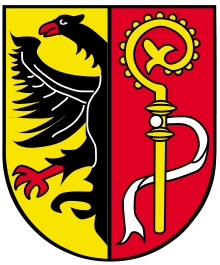 The imperial eagle symbolizes the imperial city of Biberach. Originally the coat of arms of the city showed an eagle as well as a beaver as a canting symbol. In 1488 the coat of arms of the city was changed to show only the beaver. The crosier symbolises the monasteries of the region.