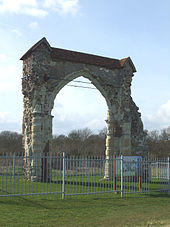 The arch is all that remains of the 12th century Bicknacre Priory. It comprises the west arch of the crossing of the church with attached fragments of the nave and north transept.[2] The Arch and the surrounding fields, known as Priory Fields, are looked after by a voluntary group, called Friends of Priory Fields.