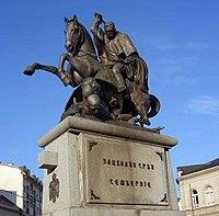 In front of City Hall is a statue of King Peter I of Serbia, who ruled the Kingdom of Serbia between 1903 and 1918. During the Second World War, the Ustaša removed it. After World War II, the communist government refused to return the monument. The first non-communist local government returned the monument in the early 1990s.