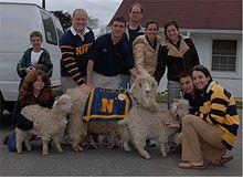Team Bill is a group of midshipmen from the United States Naval Academy who volunteer to take care of the Bill goats and to transport them to and from events. Currently there are two Bill goats being cared for by the midshipmen at a dairy farm in Gambrills, Maryland. The adjacent picture shows Team Bill on May 5, 2007 accepting the delivery of Bill XXXIII and Bill XXXIV from Stacy Bonus who donated them to the Academy.[19]