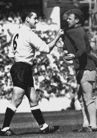 The England–Scotland football rivalry was intense throughout his playing career, and so great media attention came upon Bremner and the rest of the Scottish players after they beat world champions England 3–2 at Wembley to become the "unofficial world champions" on 15 April 1967.[70] Many teammates said that Bremner held this match as one of the proudest moments of his career.[71]