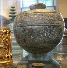 Fussman thinks that the Bimaran reliquary was manufactured in 1–15 CE.[13] In any case manufacture necessarily took place before 60 CE, which is the latest date considered for the coins.[14] The Bimaran casket is on display at the British Museum (Joseph E. Hotung Gallery), which dates the casket to 60 CE.
