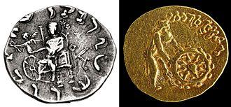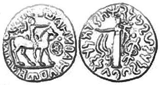 - ^ a b c d e f g h "The crossroads of Asia", edited by Ellizabeth Errington and Joe Cribb, The ancient India and Iran Trust, 1992, ISBN 0951839918, p.189-190