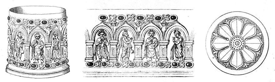 The casket is a small container reminiscent of the Pyxis of the Classical world.[4] It was found without its lid.[4] There is a lotus decorating the bottom.[4]