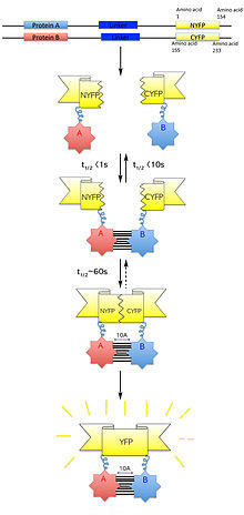 - ^ Kerppola, Tom K (2008). "BIMOLECULAR FLUORESCENCE COMPLEMENTATION (BiFC) ANALYSIS AS A PROBE OF PROTEIN INTERACTIONS IN LIVING CELLS". Annual Review of Biophysics. 37: 465–87. doi:10.1146/annurev.biophys.37.032807.125842. PMC 2829326. PMID 18573091.