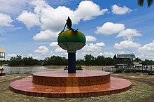 Meradong District was initially named as Binatang district and the town as Binatang town. In Malay language, Binatang literally translated as "animal". It was said that this area was once a fertile land with various wild fruits; attracting animals to gather here and search for food. Therefore, the early settlers named it Binatang. However, the local people later felt that the name was indecent and it was changed to Bintang (meaning "stars" in Malay). After a few years, the local authorities decided that the place name should not be changed so easily; and they reverted the name back to Binatang.[1][note 2] Finally, in 1984,[2] after a discussion with district council members, Sarawak chief minister Abdul Taib Mahmud decided to change "Binatang" district into "Meradong" district and the town name to "Bintangor".[1][note 3] The name Meradong is derived from the river of the same name, which passes through the town before merging into the larger Rajang River. The name Bintangor is derived from the name of a tree which is found on the hills.[2] The Calanolide A compound extracted from the Bintangor tree (Calophyllum lanigerum) is believed to be a vital component to treat HIV infection.[3]