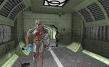 The box art depicts an X-ray of the cyborg protagonist's hand. | |
