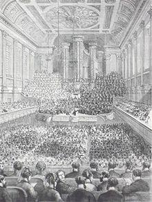 Originally hosted in St Philip's Church (later to become the Cathedral) or the Theatre Royale on New Street the available venues became too small for the festival. As a result, the Birmingham Town Hall was built,[1] and opened in 1834 to house it. The festival for 1832 was delayed by two years during its erection.