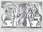 According to the tradition reported by Armando, bishop of Bisceglie, in the time of Emperor Trajan two noble Roman knights, Sergius and Pantalemon, were won over by the words of Maurus of Bethlehem, a bishop preaching Christianity. Having converted to the new faith, the three were arrested and sentenced to death on 27 July 117. After their martyrdom, their remains were transported to the Bisceglie area in the Sagina district, where a Christian widow, Tecla de Fabiis, placed them in a tomb that she had had built. Slowly the worship of the three patron saints began to spread in the newly-formed maritime village of Bisceglie. On 9 June 1167, under the bishop Amando, the sacred relics of the three martyrs were transported inside the walls of Bisceglie, and initially kept in the church of San Fortunato, near the castle. Later the bones were transported to the church of San Bartolomeo and, finally, on 30 July 1167 they were transported to the cathedral of Bisceglie. Here, they were placed in three stone urns under three altars, in a specially constructed crypt.[22]