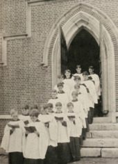 In 1891, there was a major fire in BCS buildings on the Bishop's University campus, architect Alfred Arthur Cox (architect) designed several buildings on campus including Dining Halls (1899), Kitchen (1899), addition to the Library (1899), new lecture rooms (1899).[40] BCS moved to its new campus on Moulton Hill across the river in 1922 as BU refused to sell the land. The opening ceremony was held by the Canadian governor-general Duke of Devonshire and General J. K. L. Ross. The BCS choir, founded in 1878, was once considered as the best boys' choir in Canada.[4] The original BCS campus remains today as the building of the science labs, New Arts, at Bishop's University.