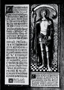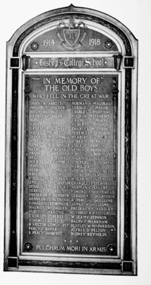 A large percentage of students who served lost their lives.[19] A stained glass window and War memorial plaques were erected as lists of honors for the Old Boys.[42]