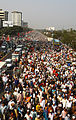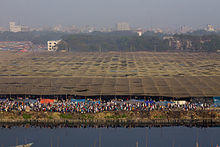 The Bishwa Ijtema (Bengali: বিশ্ব ইজতেমা, meaning Global Congregation) is an annual gathering of Muslims in Tongi, by the banks of the River Turag, in the outskirts of Dhaka, Bangladesh. It is one of the largest peaceful gatherings in the world. The Ijtema is a prayer meeting spread over three days, during which attending devotees perform daily prayers while listening to scholars reciting and explaining verses from the Quran. It culminates in the Akheri Munajat, or the Concluding Supplication (Final Prayer), Maulana Zubair Ahmed in which millions of devotees raise their hands in front of Allah (God) and pray for world peace.[1][2] The Ijtema is considered a demonstration of Muslim unity, solidarity, mutual love and respect and an opportunity to reiterate their commitment to Islamic values.[3]