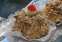 A wide range of classic sweets feature almonds as a central ingredient. Since the 19th century almonds have been used to make bread, almond butter, cakes and puddings, candied confections, almond cream-filled pastries, nougat, cookies (macaroons, biscotti and qurabiya), and cakes (financiers, Esterházy torte), and other sweets and desserts.[49]