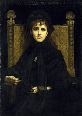 Not long after Fromental Halévy's death in 1862, Bizet had been approached on behalf of Mme. Halévy about completing his old tutor's unfinished opera Noé.[62] Although no action was taken at that time, Bizet remained on friendly terms with the Halévy family. Fromental had left two daughters; the elder, Esther, died in 1864, an event which so traumatised Mme. Halévy that she could not tolerate the company of her younger daughter Geneviève, who from the age of 15 lived with other family members.[63] It is unclear when Geneviève and Bizet became emotionally attached, but in October 1867, he informed Galabert: "I have met an adorable girl whom I love! In two years she will be my wife!"[64] The pair became engaged, although the Halévy family initially disallowed the match. According to Bizet they considered him an unsuitable catch: "penniless, left-wing, anti-religious and Bohemian",[65] which Dean observes are odd grounds of objection from "a family bristling with artists and eccentrics".[66] By summer 1869, their objections had been overcome, and the wedding took place on 3 June 1869. Ludovic Halévy wrote in his journal: "Bizet has spirit and talent. He should succeed".[67]