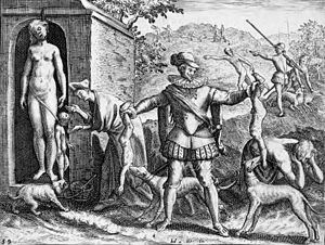 The Black Legend (Spanish: La leyenda negra) is a phrase used to describe the anti-Spanish historical propaganda created by writers of Spanish rival powers starting in the 16th century, thought to counter Spain's increasing influence and power on the world stage. According to one historian, this propaganda depicts Spain or the Spanish Empire as "cruel, bigoted, exploitative and self-righteous in excess of reality."[1] The term was coined by Julián Juderías in his 1914 book La leyenda negra y la verdad histórica ("The Black Legend and Historical Truth"). Deriving from the Spanish example, the term "black legend" is sometimes used in a more general way to describe any form of unjustified demonization of a historical person, people or sequence of events.