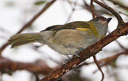 The black-billed peppershrike (Cyclarhis nigrirostris) is a species of bird in the family Vireonidae. It is found in the Andes of Colombia and northern Ecuador. Its natural habitats are subtropical or tropical moist montane forests and heavily degraded former forest.