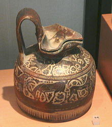 - ^ On Etruscan pottery siehe Matthias Steinhart: Schwarzfigurige Vasenmalerei II. Ausserattisch. In: Der Neue Pauly (DNP). Band 11, Metzler, Stuttgart 2001, ISBN 3-476-01481-9, Sp. 276–281.; John Boardman: Early Greek Vase Painting., Thames and Hudson, London 1998, p. 219–223.