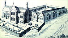 The conversion of the church into a grand mansion was completed by 1545,[4] which Bell referred to in his will as "My howse called Bell Place".[5] The nave and chancel were shortened approximately each by a half, either side of the central crossing, of which latter the southern member, extending into the cloister, was removed. Upper floors and stone mullioned windows were added above the outer aisles, a semi-circular bay window being also added to the north side of the nave. The great window at the north end of the northern transept was built in, and replaced with several smaller windows.[6] In 1555 John Hooper, the Bishop of Gloucester, was burnt to death for his beliefs.[7] His widow, Anne Hooper and other Blackfriars clergy were exiled abroad. Hooper and her daughter, Rachel, died in Frankfurt in 1555 of the plague.[8] Anne left money to her son.[9]