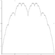 In mathematics, the blancmange curve is a self-affine curve constructible by midpoint subdivision. It is also known as the Takagi curve, after Teiji Takagi who described it in 1901, or as the Takagi–Landsberg curve, a generalization of the curve named after Takagi and Georg Landsberg. The name blancmange comes from its resemblance to a pudding of the same name. It is a special case of the more general de Rham curve; see also fractal curve.