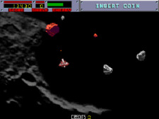 A second player can join the game at any time by pressing the Fire button, using 1 credit and turning Blasteroids into a multiplayer game. Both players can cooperate by covering each other, as well as by docking their ships into the Starlet. Docking is possible if one ship is a Speeder, and the other is a Warrior; flying over each other will turn the Speeder into a stationary Turret with more firepower, on top of the Warrior, which turns into a Spiaret, with less firepower but full control. The ships undock when either player transforms their ship into something else again. The first player to exit through the Exit Portal gets a large bonus and control of the Galactic Map.