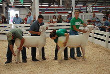 Some farmers who keep sheep also make a profit from live sheep. Providing lambs for youth programs such as 4-H and competition at agricultural shows is often a dependable avenue for the sale of sheep.[133] Farmers may also choose to focus on a particular breed of sheep in order to sell registered purebred animals, as well as provide a ram rental service for breeding.[134] A new option for deriving profit from live sheep is the rental of flocks for grazing; these "mowing services" are hired in order to keep unwanted vegetation down in public spaces and to lessen fire hazard.[135]